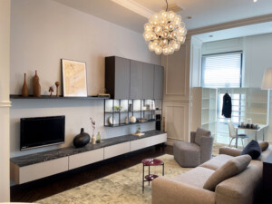 システム収納のメリットは、おおまかに4つ挙げられます。まず、モジュールを統一することによつて、家具設計が合理化かつ高速化できるので、短い納期で作ることができる点。次に、工作機械の単純化によって、低価格が実現する点。さらに、システム化することで、金物やパーツをそのつど作ることなく既製品が使えるため、品質が安定する点。そして、繰り返し、分解や組み立てができるので、引越 しても長く使い続けられるなど環境にやさしい点。これらのメリットが詰まった『CUUMA』クオリティを、ぜひ体感してください。